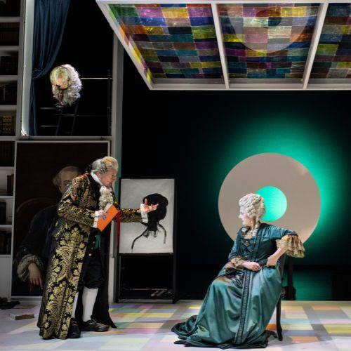 Una commedia noir, 'storica' e 'pop', divertente e spigolosa, dal grande impatto visivo. Complici la traduzione di Monica Capuani, le scene di Carlo Sala e i sontuosi costumi di Ferdinando Bruni.